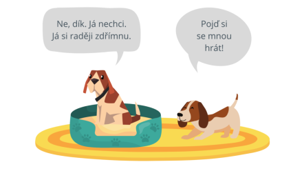 1. jeden pes je velice aktivní a chce si hrát, zatímco druhý o hru nestojí