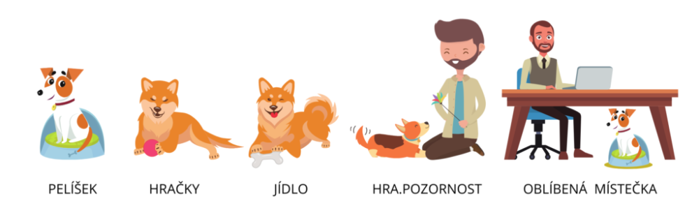 1. Každý pes má svůj pelíšek, oblíbené místo, hračky a misku na jídlo.