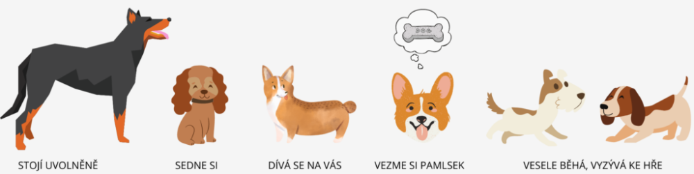 Pes, který se cítí bezpečně: má uvolněné držení těla, klidně si sedne nebo lehne, protože se nebojí napadnutí. Nesnaží se utéct ani neštěká na druhého psa. Kouká se kolem nebo na vás, chvost má v rovině zad nebo lehce svěšený a dýchá otevřenou pusou. Vezme si pamlsek, má zájem o hračku nebo dokonce iniciuje hru s druhým psem.
